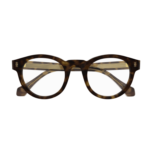 Modern pantos shape in a new faceted acetate for a bolder look. Metal core with Godron décor visible in the inner part of the temple through a bilayer acetate with crystal effect. Double C Dècor photo engraved on the end-piece and Cartier logo plaque on temples. Enhanced grip on temple tips to guarantee maximum comfort.