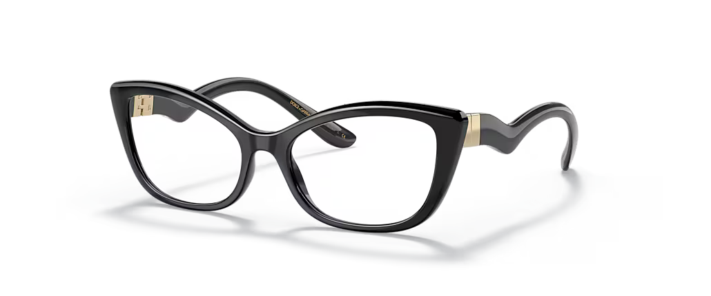 Dolce&Gabbana DG5078 eyeglasses are a perfect blend of style and sophistication. The polished black frame, crafted in a cat eye shape, offers a modern twist on the iconic silhouette. These glasses are not only stylish but also versatile, making them an ideal choice for everyday wear. Embrace your unique sense of style with these timeless frames from Dolce&Gabbana. Available with prescription lenses.