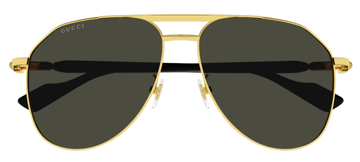 This concept was inspired by a vintage piece from the Gucci archive reinterpreted with a street and cool attitude. The integrated logo is framed by a series of details and becomes part of a repetitive outline. The oversize pilot shape comes with sophisticated temples that are embellished with the GG interlocking logo in gold, enamel detail recalling the web and long sleeve acetate end tips. To make this style even more recognizable one sku has the Guccissima lenses.