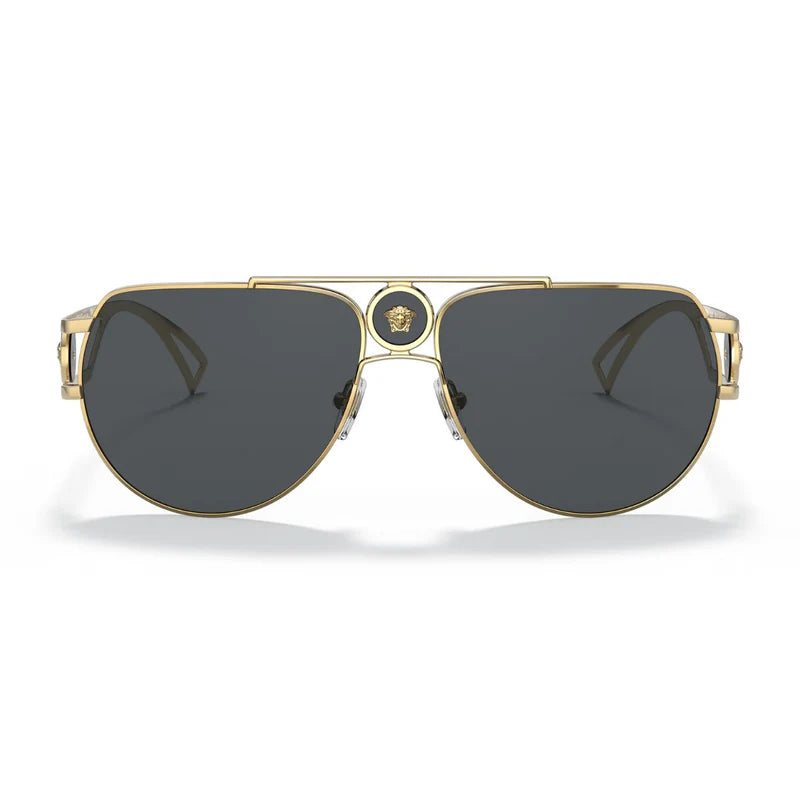 These Versace Sunglasses 2225 1002/87 are a stylish and high-quality option for anyone looking to protect their eyes while making a fashion statement. The gold metal frame is not only eye-catching but also durable, while the solid grey lenses provide 100% UV protection. Made in Italy with polycarbonate lens material, these aviator sunglasses are a must-have for any sunglasses collection.
